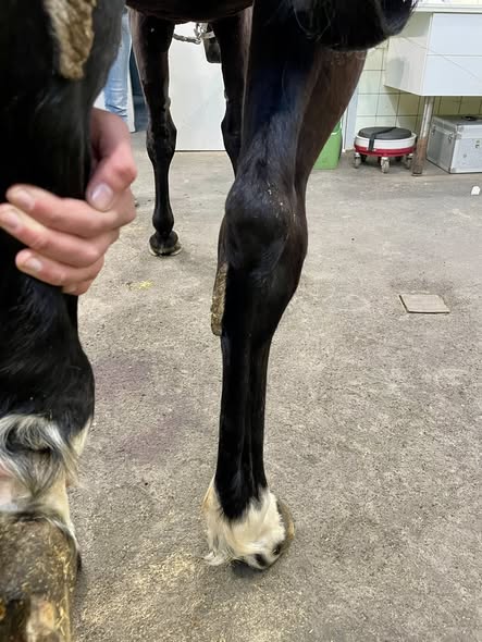 Die enorm vergrößerte Kastanie hinten rechts, die sich quasi leistenförmig über das gesamte Sprunggelenk erstreckt.