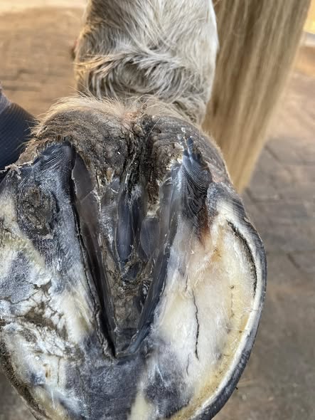 Auch unsere Schimmelstute hat ihre Strahl-und Hufwandprobleme längst hinter sich gelassen, wird aber noch täglich mit unserem PES Hufspray gepfleg-