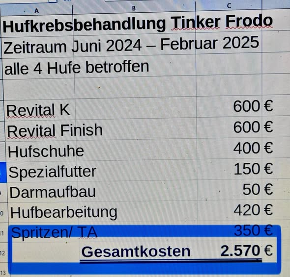 Insbesondere Tinker-Besitzern werden wir zukünftig übrigens verstärkt empfehlen, ihre Pferde auf Myopathien testen zu lassen. Es scheint diesbezüglich einen Zusammenhang mit Hufkrebs zu geben, aber das ist ein Thema für sich. Dazu vielleicht bald mehr.