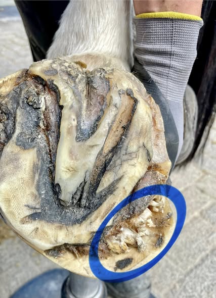 1. Foto: an ihrer „fransigen“ Struktur im Huf erkennbar