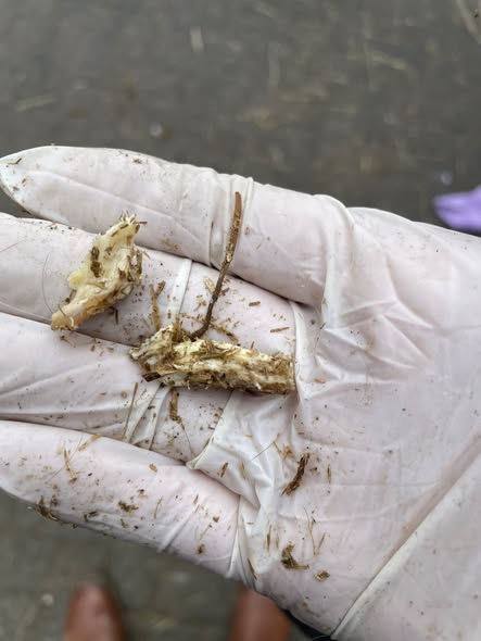 2. Foto: abgestorben und aus der früheren weißen Linie vorsichtig herausgezogen