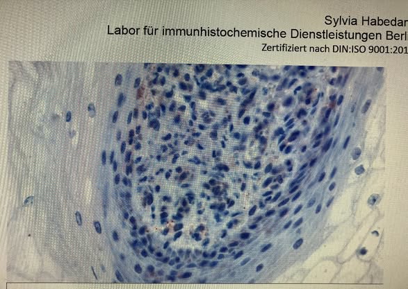 Foto 3 belegt (leider mal wieder), dass es sich bei diesen Erregern um Treponemen handelt, die sich hier in großen Mengen in einer Papille angesiedelt haben. Innerhalb der Papille sind diese Bakterien durch mehrere Zellwände gut geschützt, was jegliche Bekämpfung erschwert.